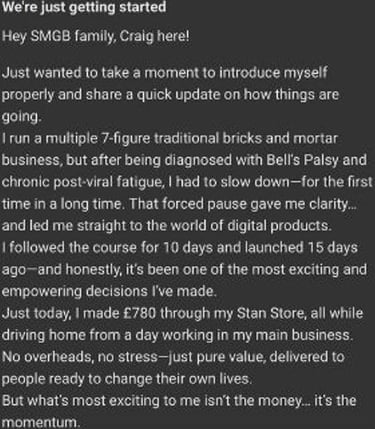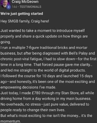 This is the exact system I used to go from feeling stuck in a job I didn’t love to quitting and building my own profitable online business. With the tools and support inside SMGB, I launched my first digital product, started making real sales, and created a business I could run from anywhere.